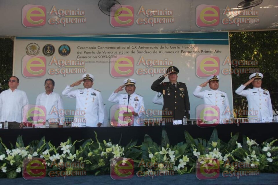 Cabe recordar que el 21 de abril de 1914 es una fecha histórica para esta Institución, en la que el pueblo veracruzano, junto con el Teniente José Azueta y el Cadete Virgilio Uribe, así como sus compañeros de armas, efectuaron con honor y valentía la defensa de la patria, preservando la Soberanía Nacional, enfrentando a las tropas estadounidenses que invadieron el puerto de Veracruz, dejando un legado que hoy prevalece en esta noble Institución, cuya misión es Servir a México.