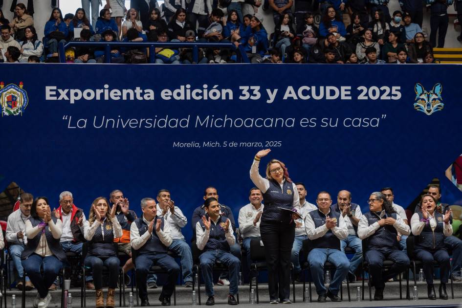 Morelia, Michoacán, a 05 de marzo de 2025.- La Universidad Michoacana de San Nicolás de Hidalgo (UMSNH) las y los espera con los brazos abiertos para que continúen su futuro profesional, señaló la rectora Yarabí Ávila ante miles de jóvenes que asistieron a la inauguración de la 33 edición de ExpOrienta y de los Encuentros Académicos, Culturales y Deportivos de las Escuelas Incorporadas (ACUDE) 2025.