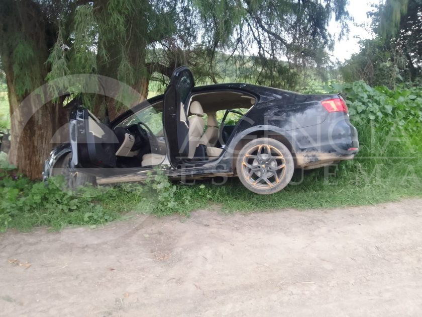 Enseguida, los tres presuntos delincuentes abandonaron el Jetta, negro, sin placas de circulación, pues lo chocaron contra un árbol y continuaron la huida, sin que fueran localizados.