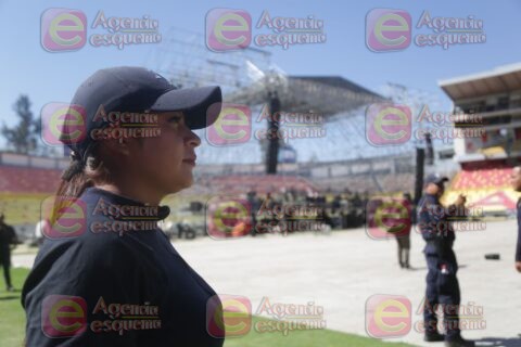 Morelia, Mich,. 17 de febrero de 2023.- Derivado de la gran afluencia de personas que se esperan para el día de mañana por un evento en el Estadio Morelos, el subsecretario de Operación Policial de la SSP, José Ortega Silva, supervisó el dispositivo que se efectuará, donde se desplegarán finalmente más de mil efectivos de la Guardia Civil, Policía Morelia y Seguridad Privada para tareas de vigilancia y vialidad al interior y exterior del recinto.