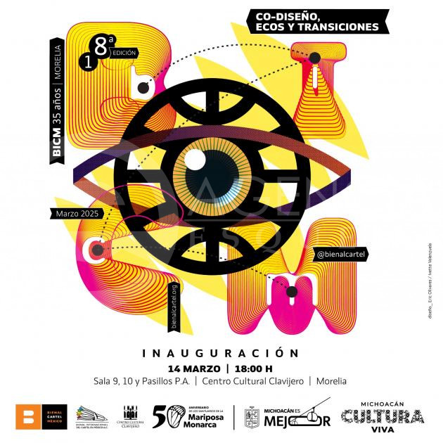 Morelia, Michoacán, 13 de marzo de 2025.- A partir de este 14 de marzo se instalará la décimo octava edición de la Bienal Internacional del Cártel en México, en las salas 9 y 10 del Centro Cultural Clavijero.