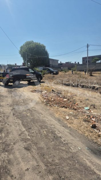 Morelia, Michoacán, 4 de mayo de 2025.- La mañana de este domingo localizaron dos cuerpos, uno femenino y otro masculino en una calle de terracería de la colonia La Aldea.