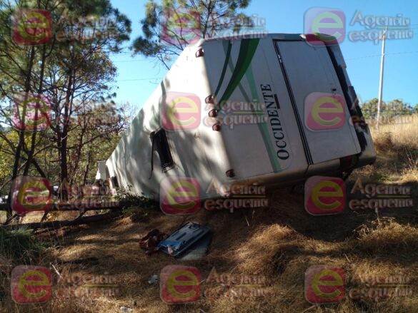 Se ignora la causa que originó el accidente de un autobús de pasajeros que se salió de la carpeta asfáltica para finalmente volcarse.Al lugar arribaron elementos de la Guardia Civil, Protección Civil y Tránsito, para atender la emergencia, conociéndose el traslado de los lesionados al Hospital del IMSS Bienestar y Centro Médico Tacámbaro, respectivamente.