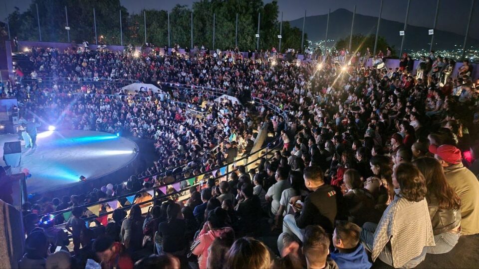 Morelia, Michoacán; a 29 de abril de 2023.- Lleno espectacular registró el Teatro “Chucho Monge” del Colegio de Morelia, con la presentación de “Un Viaje por el Mundo de Cri-Cri”, a cargo del Festival Internacional de Títeres «Titerelia», y cuya convocatoria reunió a cientos de familias que disfrutaron de la música y canciones del Grillito Cantor.
