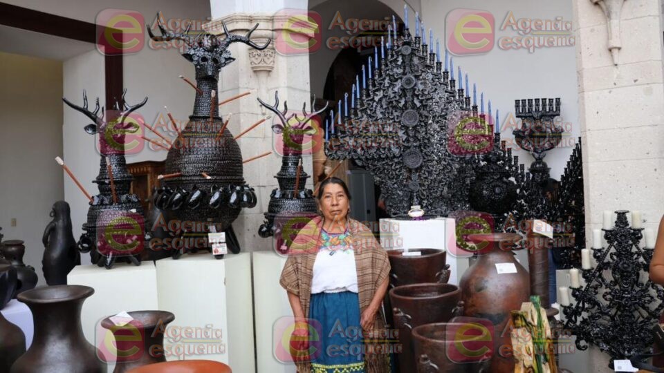 Uruapan, Michoacán, 29 de marzo de 2024.- La maestra artesana, Esperanza Ceja Ramos, de la comunidad de Santa Fe de la Laguna, en el municipio de Quiroga, ganó el galardón “Victoriano Salgado Morales”, en la rama de alfarería vidriada sin plomo, con un candelabro de 25 velas, en el LXIII Concurso Estatal de Artesanías, con motivo del Domingo de Ramos en Uruapan.