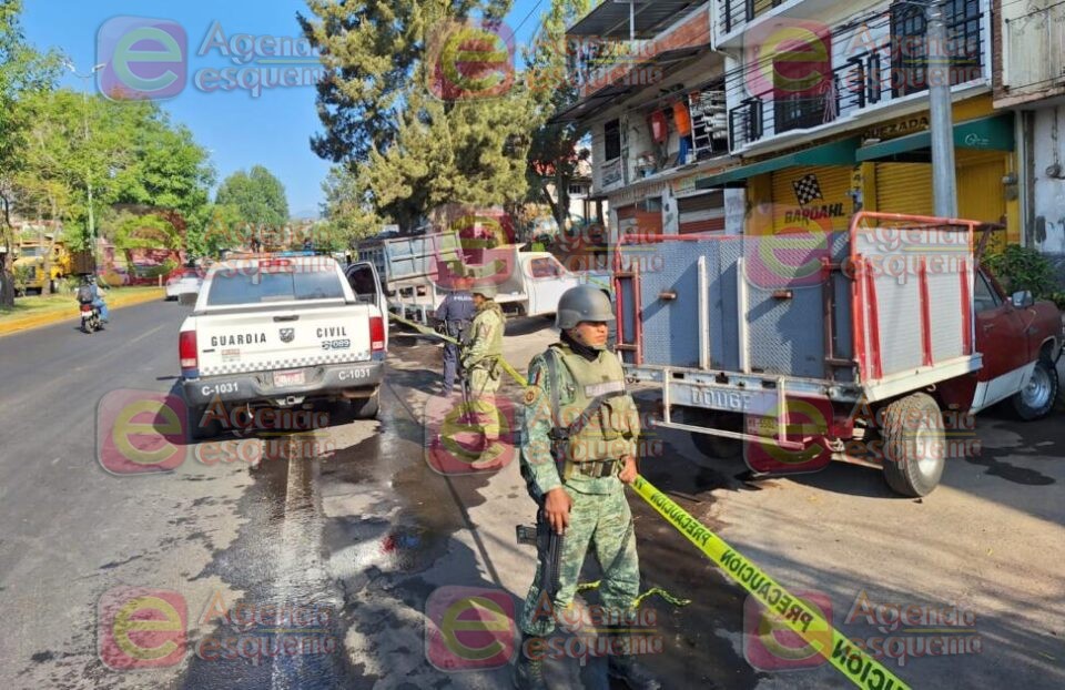 Uruapan, Michoacán, 12 de abril de 2024.- Un hombre fue privado de la vida a balazos por fuera de una tienda de materiales de su propiedad sobre la calzada Benito Juarez, en la colonia Mártires de Uruapan, la mañana de este viernes.