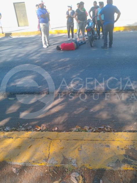 Paramédicos asistieron para brindar los primeros auxilios a Guillermo N., de 25 años de edad quien se identificó como habitantes del fraccionamiento Girasoles, cayó de su unidad, una motocicleta de la marca Italika modelo FT-125 color azul.