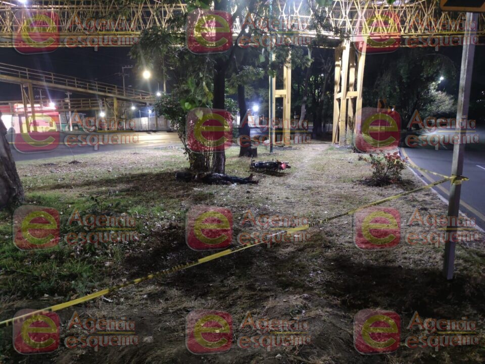 La víctima hasta ahora no identificada, viajaba en una motocicleta marca Honda color blanco y al llegar a una curva cerca del puente del Río Grande, derrapó y se estrelló contra un árbol.