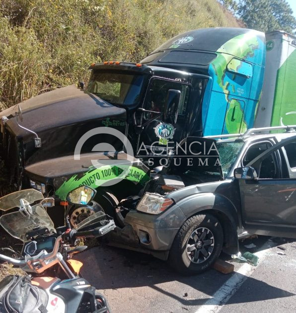 Uruapan, Michoacán, 04 de noviembre de 2025.– Un hombre pereció prensado y dos más resultaron heridos tras un choque entre una camioneta y un tráiler la mañana de este martes sobre la autopista Siglo XXI, en el tramo Uruapan-Pátzcuaro.