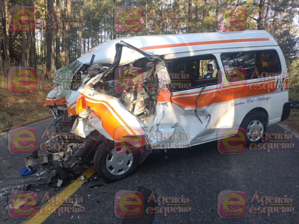 ZINAPÉCUARO MICH., 18 de marzo.- Esta mañana el accidente de una camioneta del servicio público, dejo como saldo seis personas muertas y dos mas lesionadas, el incidente se registro sobre la carretera Zinapécuaro -Huajumbaro.