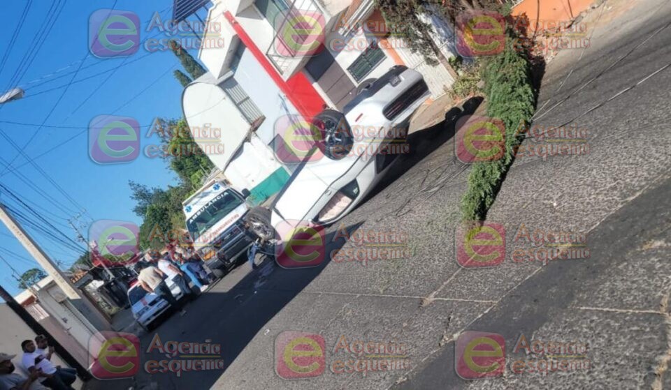 Uruapan, Michoacán, 28 de marzo de 2023. – Una mujer resultó lesionada tras la volcadura del vehículo en que viajaba, a unos metros de la Facultad de Agrobiología, en la colonia Melchor Ocampo.