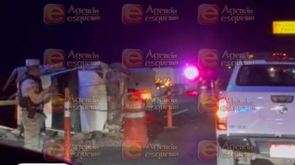 Los vehículos involucrados son una camioneta Nissan, estacas y una Urvan de color blanco, la cual volcó tras la brutal colisión.