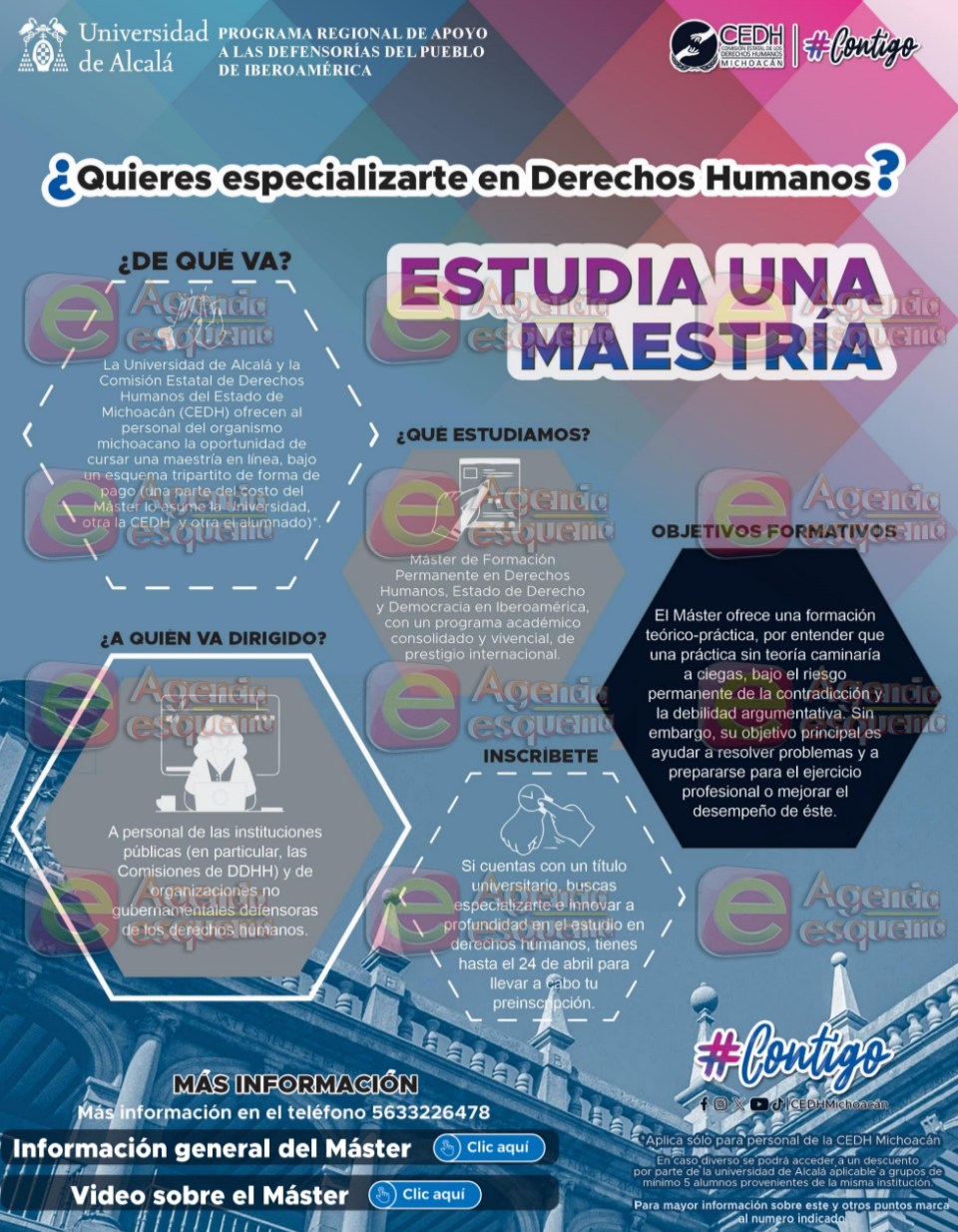 Para mayores informes ingresar a las páginas web cedhmichoacan.org y/o uah.es/es/