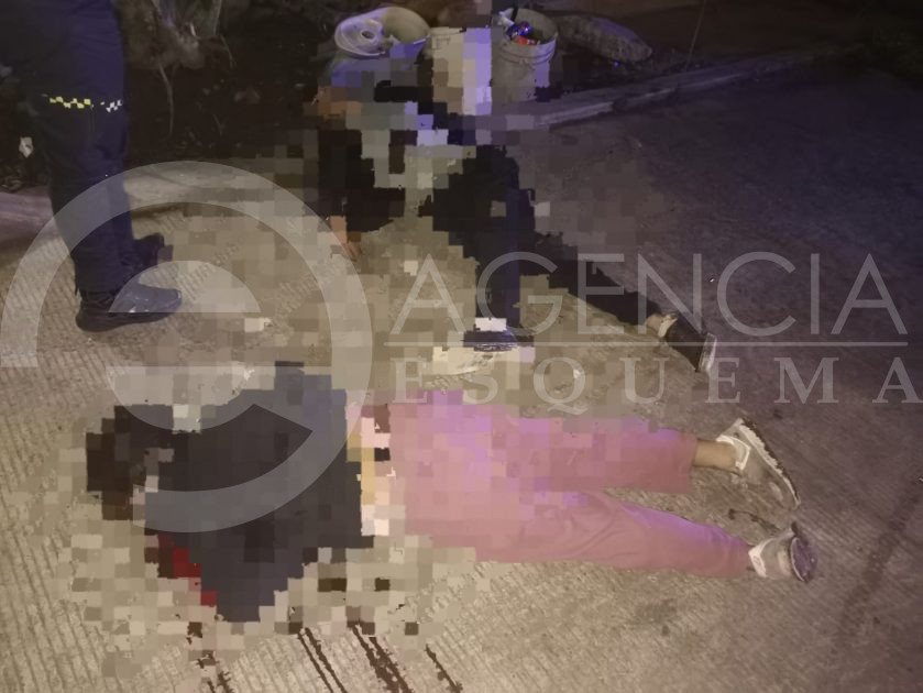 Las víctimas, un hombre y una mujer, presentaban varios impactos de bala en la cabeza y tórax, respectivamente: la mujer vestía pants de color rosa, chamarra azul marino y tenis blancos, es de entre 35 y 40 años de edad.