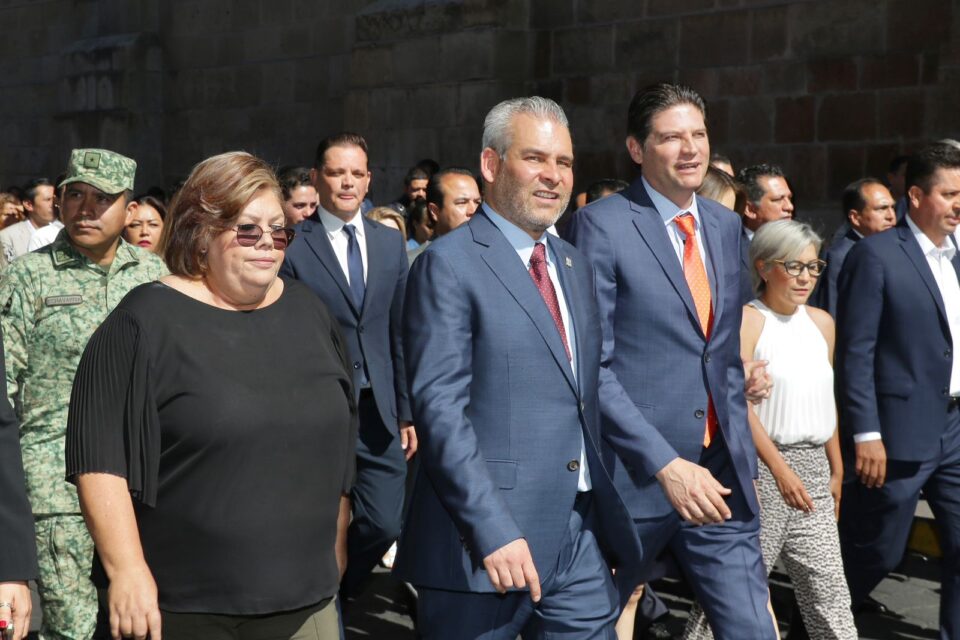 *Morelia, Michoacán, 2 de mayo de 2023.-* El gobernador Alfredo Ramírez Bedolla y el presidente municipal Alfonso Martínez Alcázar, realizaron el recorrido del Bando Solemne para dar a conocer el programa de actividades con motivo del 482 Aniversario de la Fundación de Morelia.