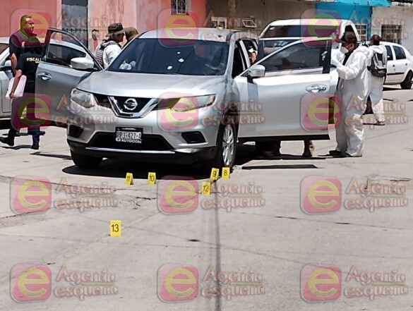 En el lugar, especialistas en materia pericial embalaron cartuchos percutidos calibre .9 milímetros, accionados por delincuentes que viajaban en el asiento trasero del vehículo Nissan, a través del medallón.