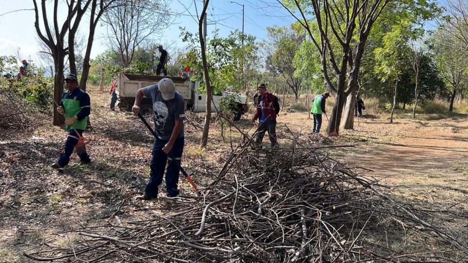 Por ello, cuadrillas de las Direcciones referidas trabajan para realizar la limpieza del área verde ubicada en la Avenida Héroes Anónimos.