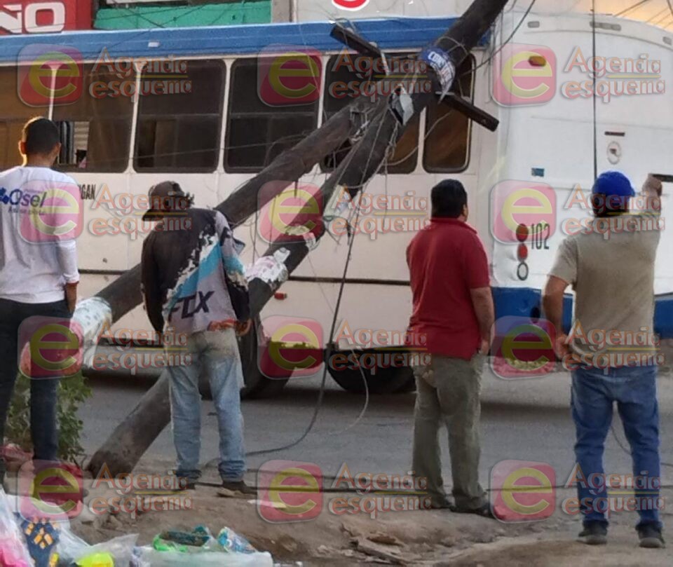 Apatzingán, Michoacán, 6 de enero de 2024.- En un incidente ocurrido la mañana de este sábado alrededor de las 08:30 horas, dos postes de teléfono cayeron sobre un microbús en la Avenida Constitución de 1814 esquina con la calle Cayetano Andrade de la colonia Centro, dejando únicamente daños materiales.