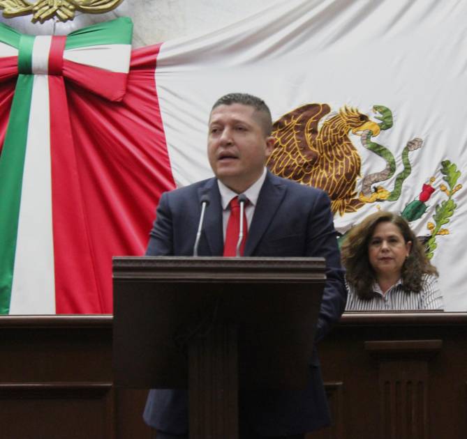 En su intervención en tribuna, presentó una iniciativa para reformar y adicionar diversas disposiciones de la Ley de los Trabajadores al Servicio del Estado de Michoacán de Ocampo, a fin de garantizar espacios laborales adecuados.