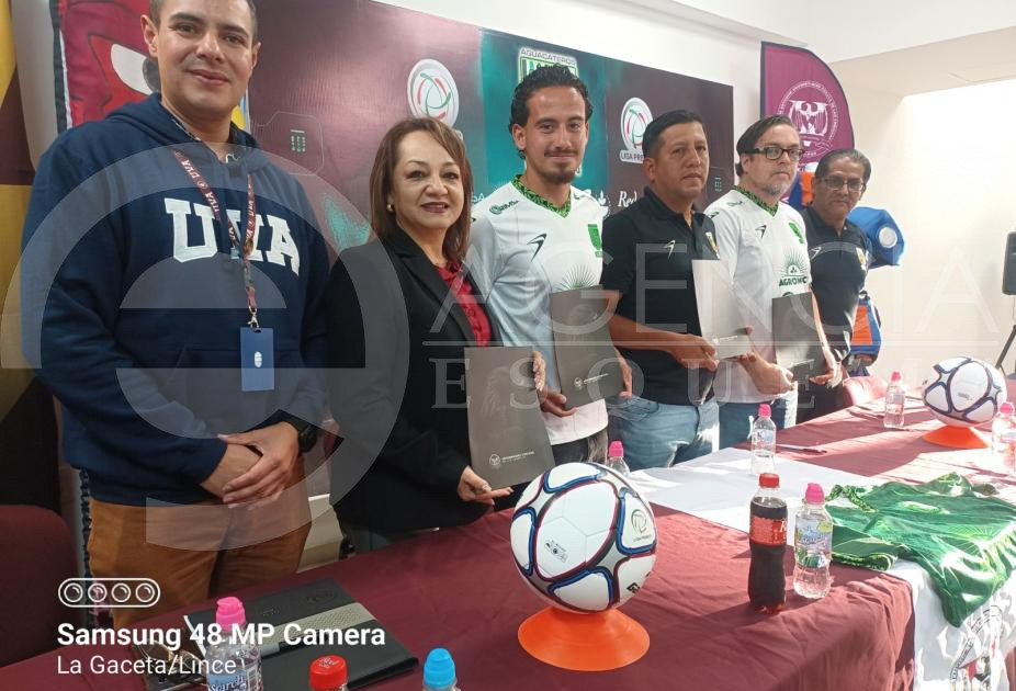 Uruapan, Michoacán, 24 de enero de 2025.- Con la firme idea de refrendar el campeonato en el torneo de Clausura 2025 de la Liga Premier, Serie A en la categoría de filiales, el equipo de futbol profesional Aguacateros CDU, fue presentado ante los medios de comunicación, tras la firma con la Universidad Vizcaya de Las Américas.
