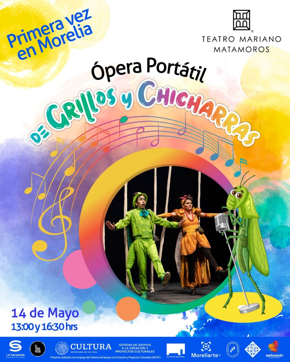 La obra es una pieza creada por la compañía independiente Ópera Portátil, la cual se ha encargado de crear e impulsar el género operístico desde 2011, mediante un equipo en el que hay compositores como José Miguel Delgado y Marcela Rodríguez. Tienen en su repertorio otras tres óperas para infancias, de modo que De Grillos y Chicharras es la pieza con la que visitan por primera vez Morelia.
