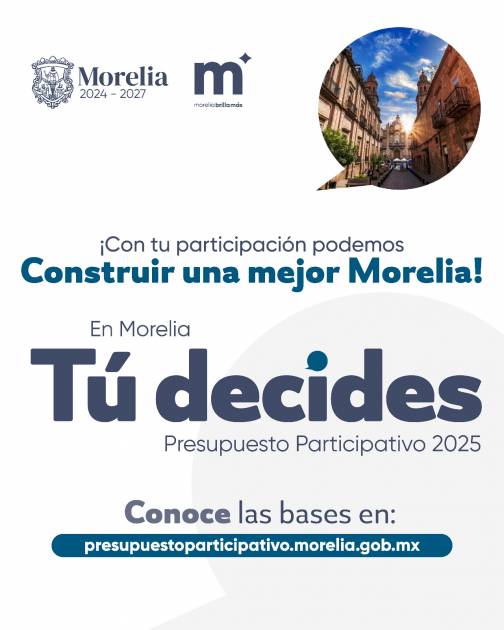 En ese sentido, la administración municipal agradece a todas las ciudadanas y ciudadanos que registraron sus propuestas de proyecto a este icónico programa, con el cual es la sociedad moreliana, mediante su voto, quienes elijan la serie de obras públicas que se lleven a cabo con un presupuesto que este año asciende a 24 millones de pesos.