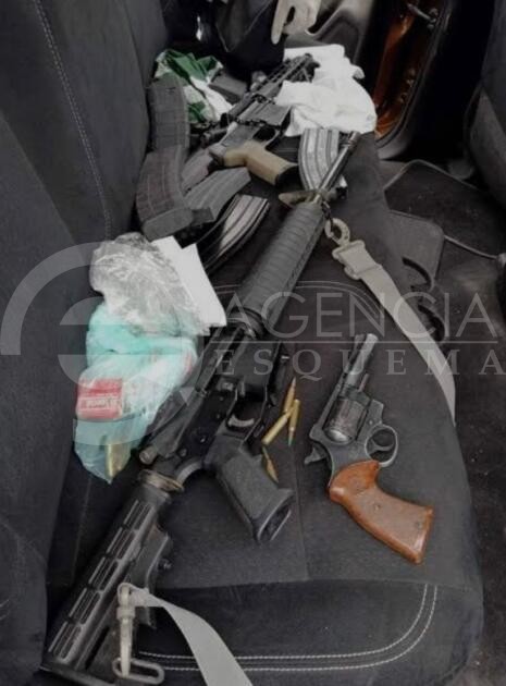 Además de las armas, también se incautaron tres chalecos tácticos con la leyenda «Marina», así como un aditamento para lanza granadas.