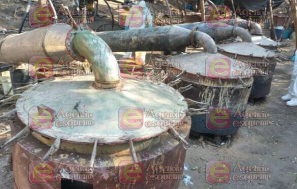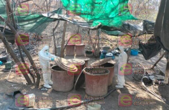 En el lugar encontraron condensadores metálicos de gran tamaño, tanques de gas, tinas de plástico, garrafas con químicos, costales con precursores químicos y reactores, entre otras herramientas.