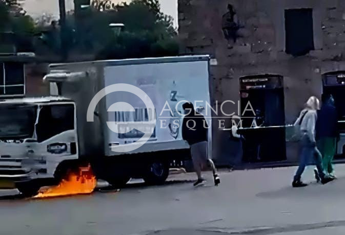 Morelia, Michoacán, 01 de diciembre del 2025.- Un grupo de pandilleros, vándalos, que dicen ser normalistas, le prendieron fuego a una camioneta en pleno Centro de esta capital michoacana esta tarde de lunes.
