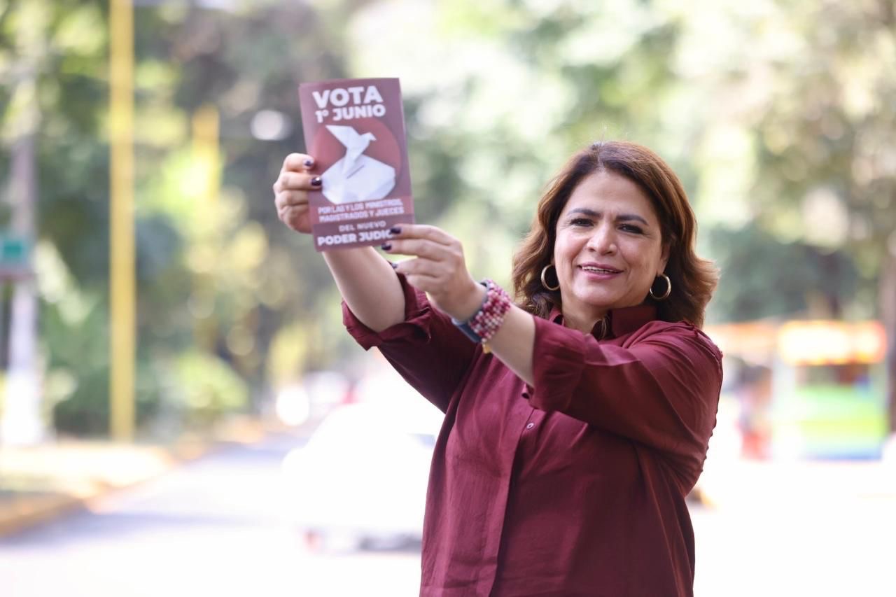 Junto al diputado local, Carlos Bautista Tafolla , así como bajo el respaldo de un grupo de militantes de izquierda, en su mayoría jóvenes, la legisladora entregó de mano a mano volantes con contenido informativo referente a la elección con que se definirán juezas, jueces, magistradas, magistrados, ministras y ministros.