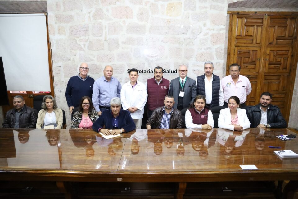 El secretario de Salud en Michoacán, Elías Ibarra Torres, junto con el encargado de la delegación del IMSS Estatal, Javier de Jesús Cabral Soto, recibieron a los 16 especialistas que se integrarán a la plantilla laboral para dar un total de 29 especialistas, expertos en oncología, nefrología, neurología, cardiología, reumatología, gastroenterología, otorrinolaringología, angiología y cirugía vascular.
