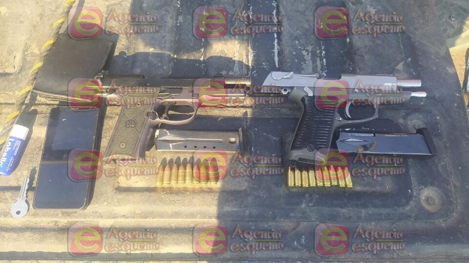 A estos dos sujetos les confiscaron una pistola Ruger, colores negro y gris con su respectivo cargador abastecido con 9 cartuchos útiles y una Pietro Beretta, con un cargador y 8 cartuchos útiles.