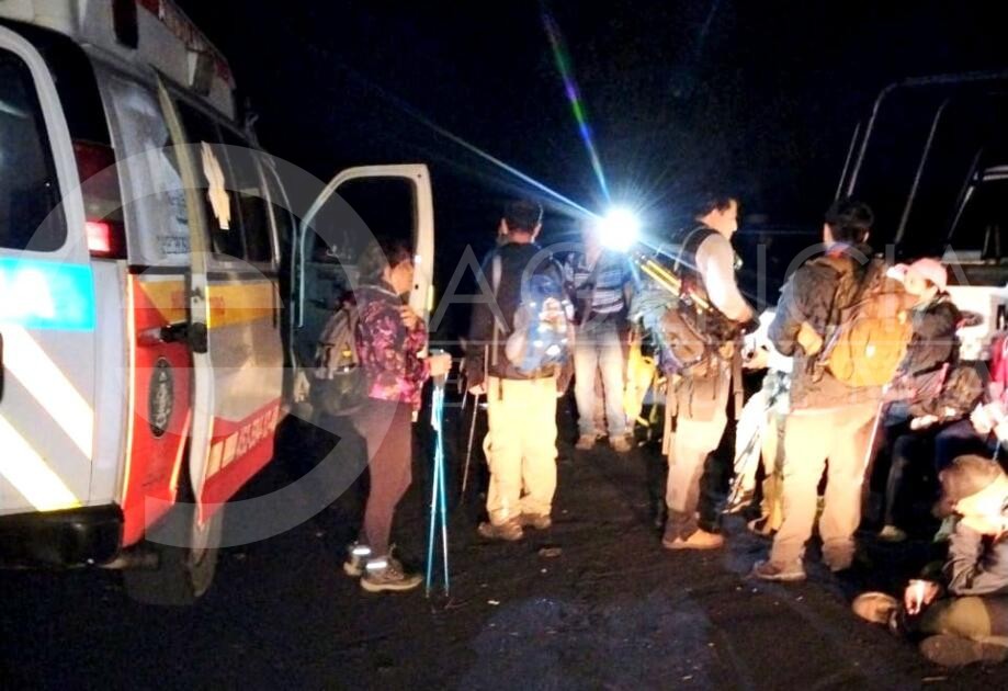 Rodearon parte del volcán por la parte norte, por el tobogán, el ranchito y salir al Sapichu, para llegar a donde se ubican las cocinas de comida, donde los esperaba una patrulla y una ambulancia de Nuevo Parangaricutiro.