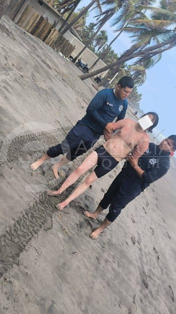 Lázaro Cárdenas, 3 de junio de 2025.- Heroico rescate realizaron elementos de la policía turística de Lázaro Cárdenas luego de localizar, a un turista que estaba por ahogarse, durante un recorrido de rutina en playa jardín.
