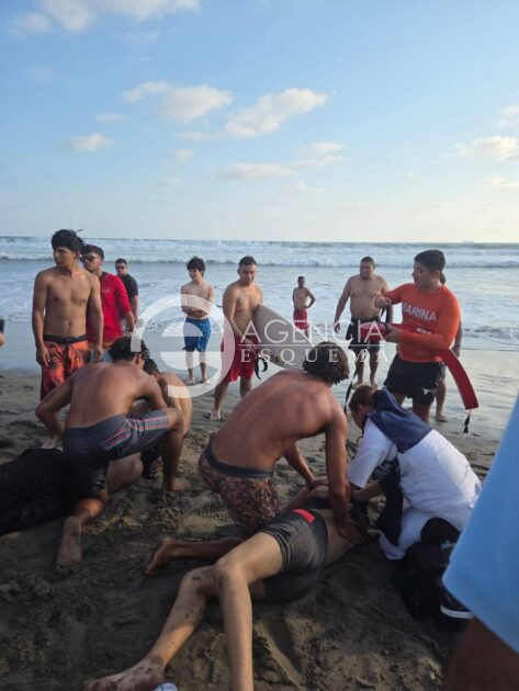El incidente se registró alrededor de las 17:30 horas frente al complejo ecoturístico de Playa Eréndira, donde los jóvenes, originarios de Pátzcuaro, ingresaron al mar y fueron sorprendidos por las intensas corrientes derivadas del fenómeno conocido como mar de fondo.