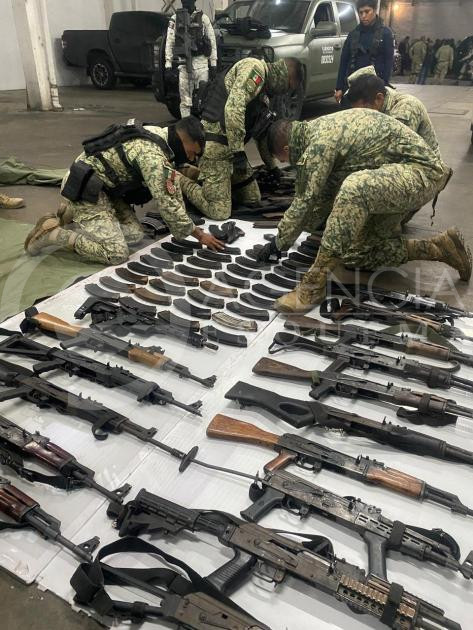 Además, 44 granadas, 55 kilos 62 gramos de pólvora, 181 mil 824 litros 264 mililitros de hidrocarburo (gasolina y diésel), ocho mil 700 litros de gas LP, 521 vehículos, seis embarcaciones, 57 inmuebles, cinco millones 356 mil 511 pesos, 12 mil 557 metros cúbicos de madera, seis kilos de pepino de mar, 18 aves (loros, tucanes, halcones),136 aparatos electrónicos (drones, teléfonos celulares, inhibidores de señal, iPad, radios portátiles y USB), 228 bolsas, pacas y bultos de ropa, dos mil 169 objetos del delito: (camisolas, pantalones, fornituras, chalecos, mochilas y maletas).