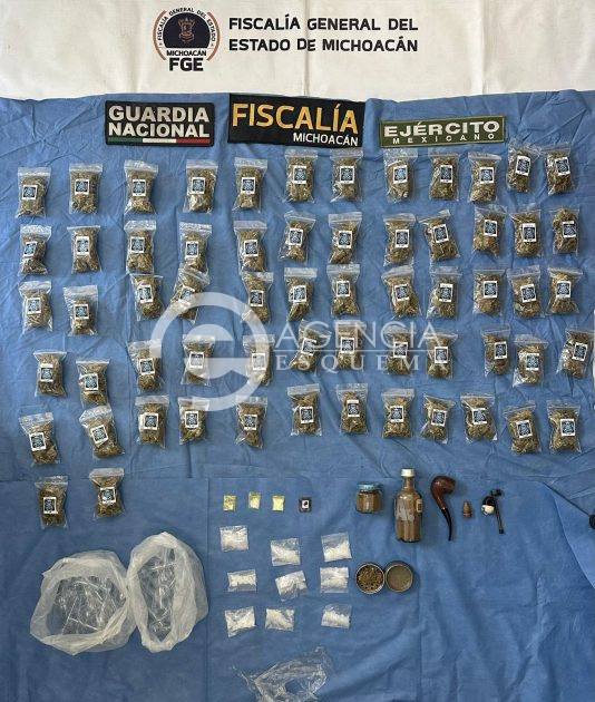También, dicho inmueble ubicado a un costado de la carretera Morelia-Acámbaro, en la localidad de Tzintzimeo, de este municipio de Álvaro Obregón, era utilizado como “picadero” o centro de reunión de adictos, por lo que, de la misma manera aseguraron 60 pipas de cristal.