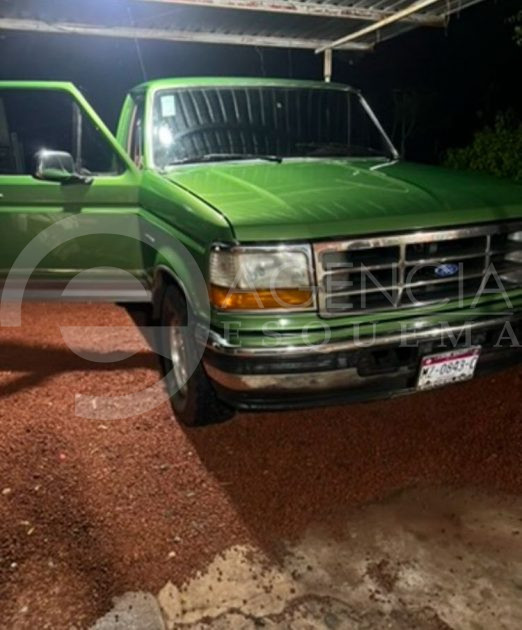 La unidad es una camioneta de la marca Ford tipo F150 color verde con placas de circulación MZ-0843-C .