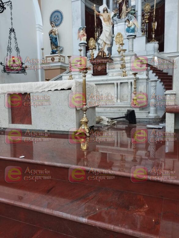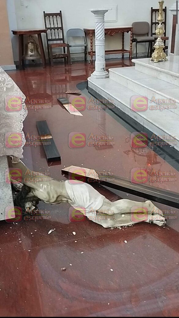 También causó destrozos en una imágen de fibra de vidrio de la Virgen de Fátima, cuadros de San Rafael Guízar y Valencia, San Juan Pablo II y San Joselito.