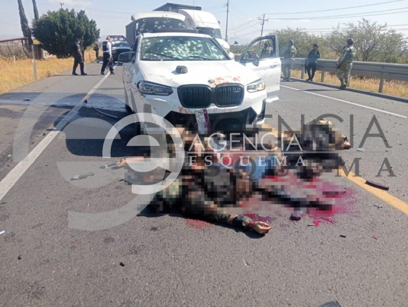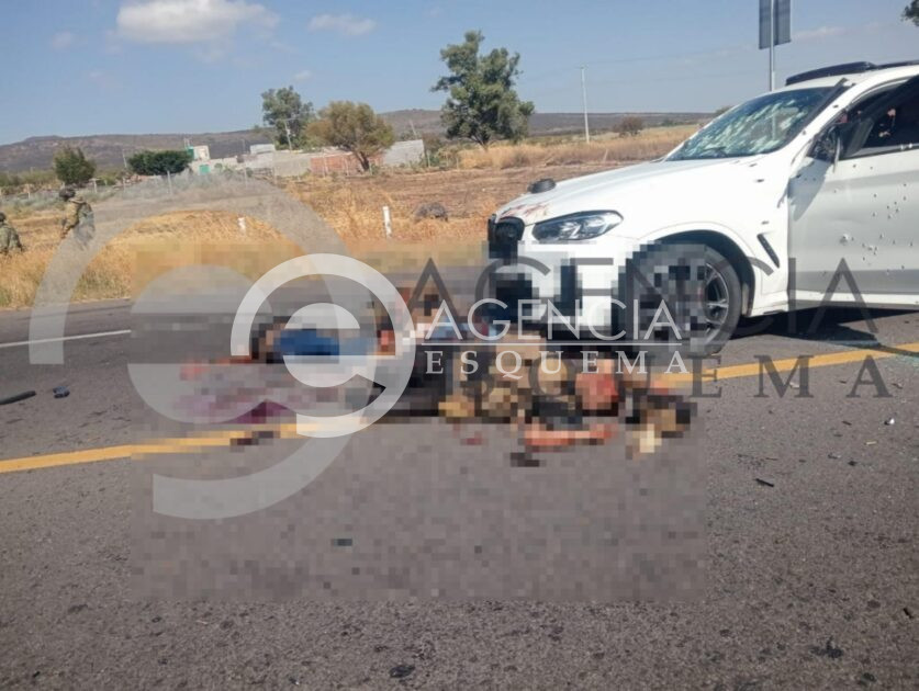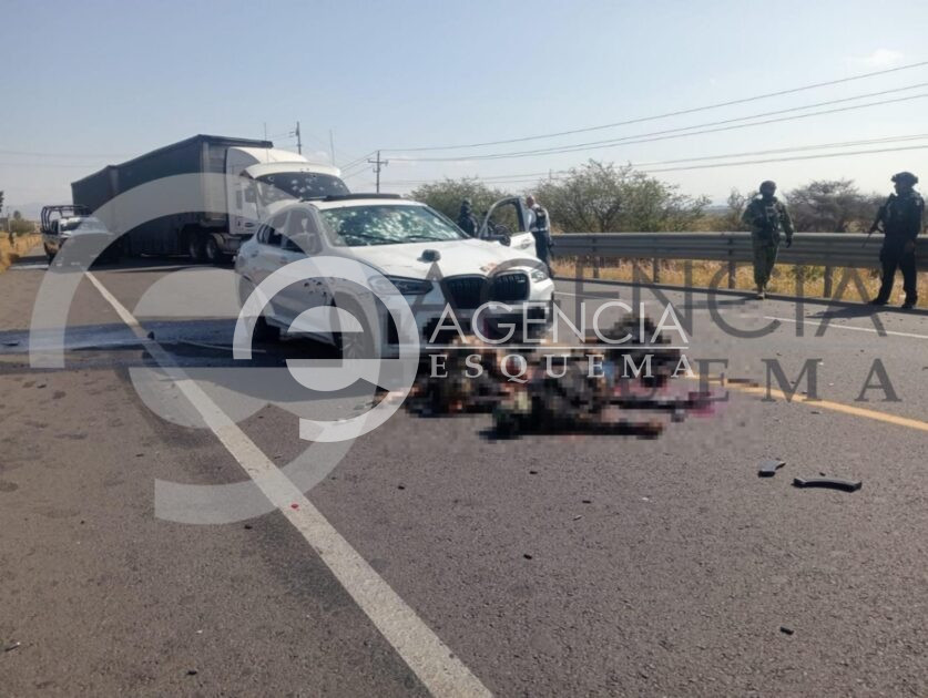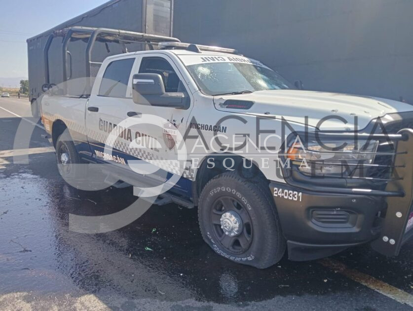 Cuando los representantes de la ley repelen la agresión, en este hecho registrado sobre la carretera Zamora-La Piedad, Michoacán, logran abatir a tres civiles, sin embargo, también cuatro de los efectivos policíacos resultaron lesionados.