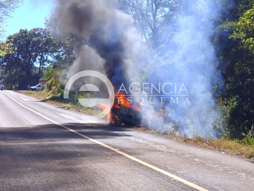 Uruapan, Michoacán, 07 de diciembre de 2025- Una camioneta se incendió al parecer por una falla mecánica la mañana de este domingo sobre la carretera «libre» Uruapan-Pátzcuaro, a unos metros de Toreo El Alto.