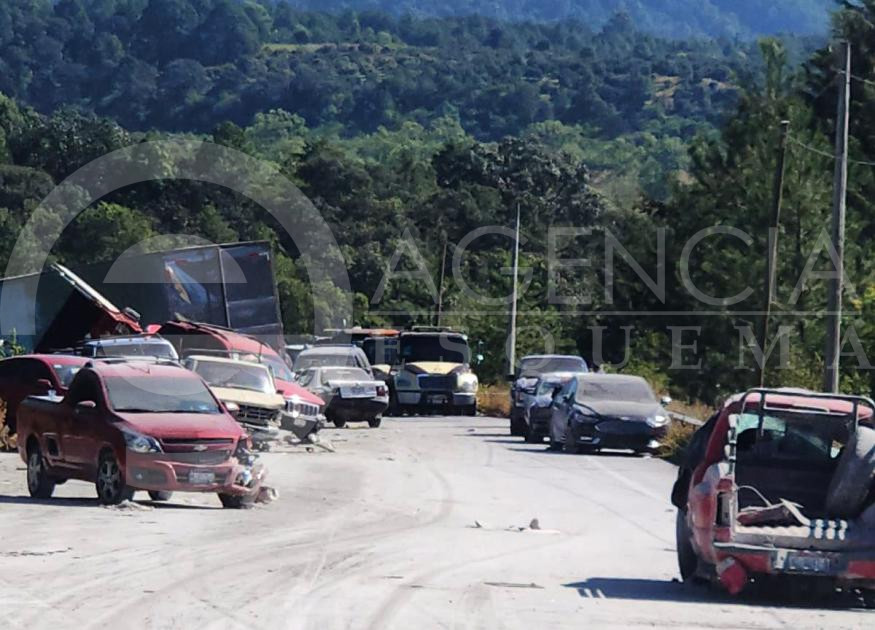 San Lorenzo (Uruapan), Michoacán a 14 de noviembre de 2024.- Tras el aparatoso accidente automovilístico registrado la noche anterior cerca de San Lorenzo, de la carretera Uruapan-Los Reyes, la rúa sigue bloqueada, no se han movido del lugar, ninguno de los 20 vehículos involucrados, dado que no se ha presentado personal del seguro de autos. Cinco personas permanecen hospitalizadas.