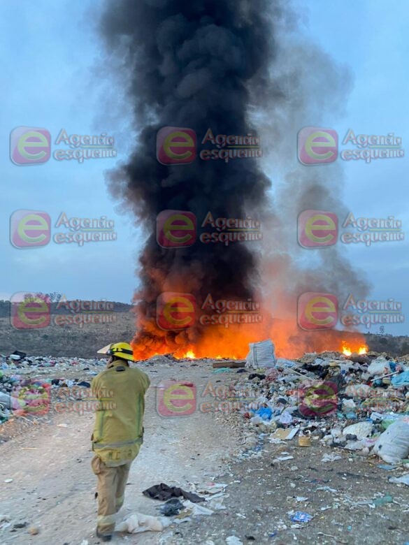 Se informó que por causas hasta ahora no determinadas, el fuego inició en la cortina de descarga ayer en la noche y de inmediato personal de bomberos acudió al lugar, pero lamentablemente el incendio se propagó rápidamente entre la basura.