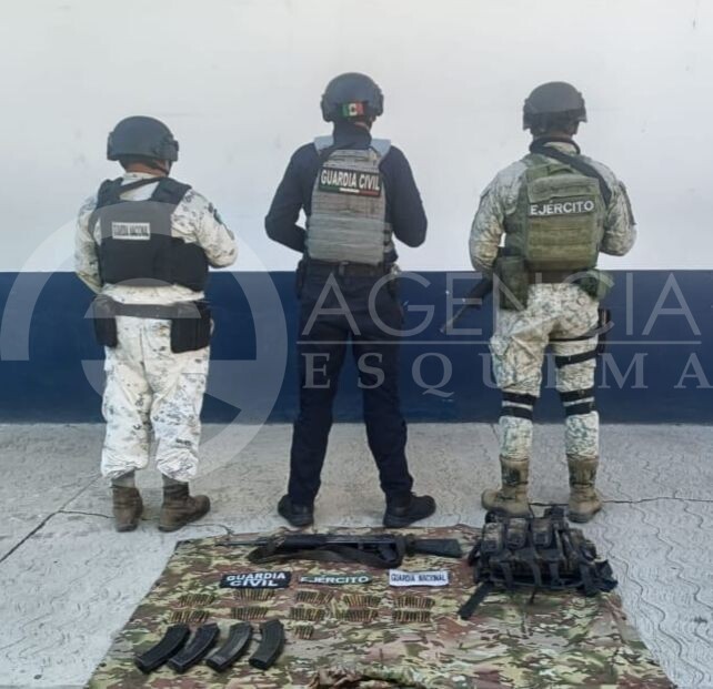 En la localidad de Los Charcos los agentes de la Guardia Civil, Ejército Mexicano y Guardia Nacional, detuvieron a un hombre de 19 años, mismo que portaba un fusil, cargadores, cartuchos y un chaleco balístico.