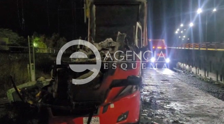 La cabina y el motor quedaron totalmente calcinados, por lo que, de acuerdo a los datos obtenidos en el lugar, la pesada unidad trae las placas de circulación PG-42-056.
