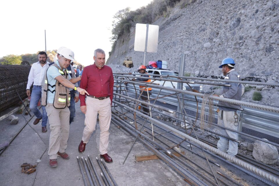 Acompañado del coordinador de la Comisión Estatal del Agua y Gestión de Cuencas, Roberto Arias, el mandatario inspeccionó los avances de reposición carretera a la altura de la Presa Francisco J. Múgica y ahí solicitó reforzar los trabajos de ingeniería y reconstrucción.