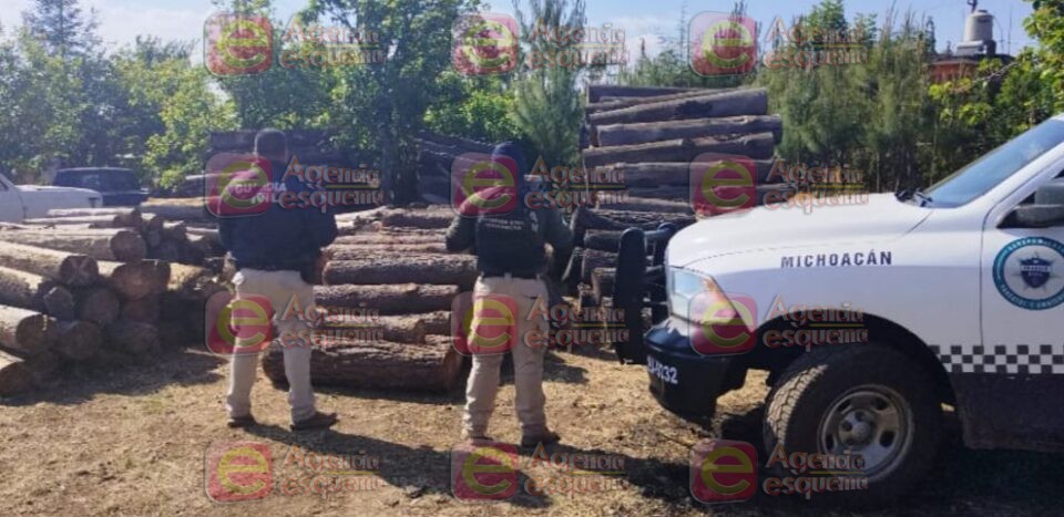 Irimbo, Michoacán,18 de abril del 2023.- Sujetos dedicados a la depredación de bosques y cerros, huyeron al sentir de cerca la presencia de la Policía de la Guardia Civil y abandonaron 41 árboles de pino que cortaron ilegalmente.