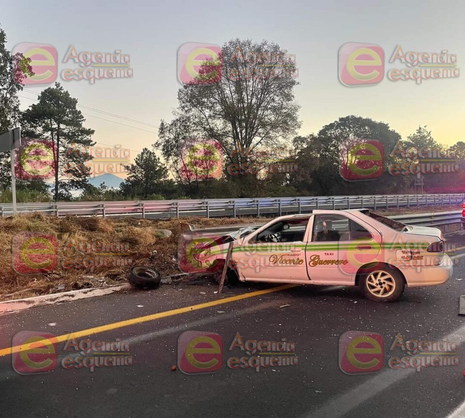 SALVADOR ESCALANTE, MICH., 15 de Febrero de 2024. – La mañana de este domingo, un taxi perteneciente a la organización Vicente Guerrero protagonizó un aparatoso accidente al chocar contra la contención de acero en la autopista Uruapan-Pátzcuaro, cerca de la caseta de cobro de Zirahuén.