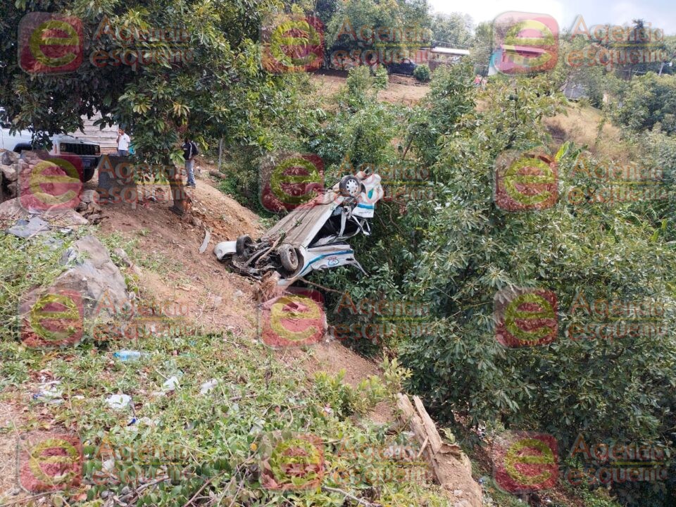 El taxi cayó a un pequeño barranco y volcó, hasta que detuvo su alocada carrera al terminar atorado en unos árboles, donde acabó convertido en chatarra. Milagrosamente, el ruletero únicamente sufrió algunas contusiones leves.