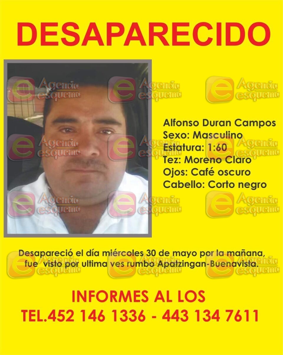 Ante lo ocurrido, los seres queridos de Alfonso reportaron su desaparición ante la Fiscalía Regional de Uruapan, además de que difundieron la fotografía del taxista a través de redes sociales para solicitando a la sociedad de su apoyo para lograr ubicarlo con bien.